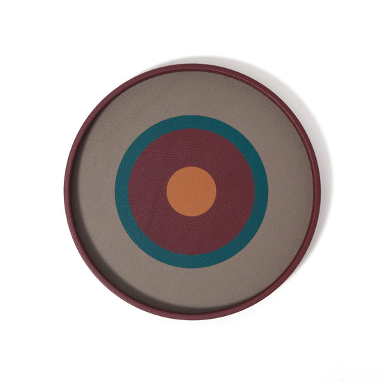 The "Apple of My Eye" Tray by Madame Malachite celebrates the power of circles, a symbol of unity, infinity, and the natural cycles of life. The circular eye motif on this tray acts as a talisman of protection, inviting positive energy into any space. Crafted with intricate leather marquetry, its vibrant color combinations are carefully curated and limited each year, making each piece a unique and collectible work of art.